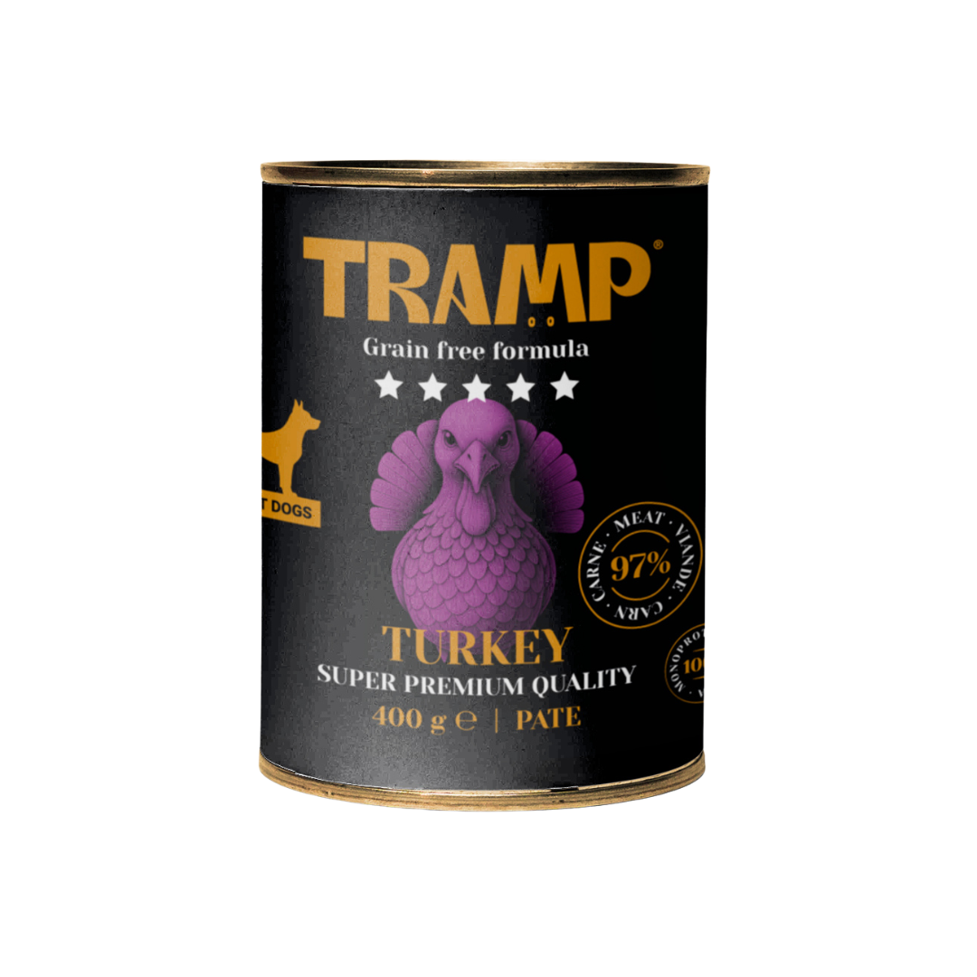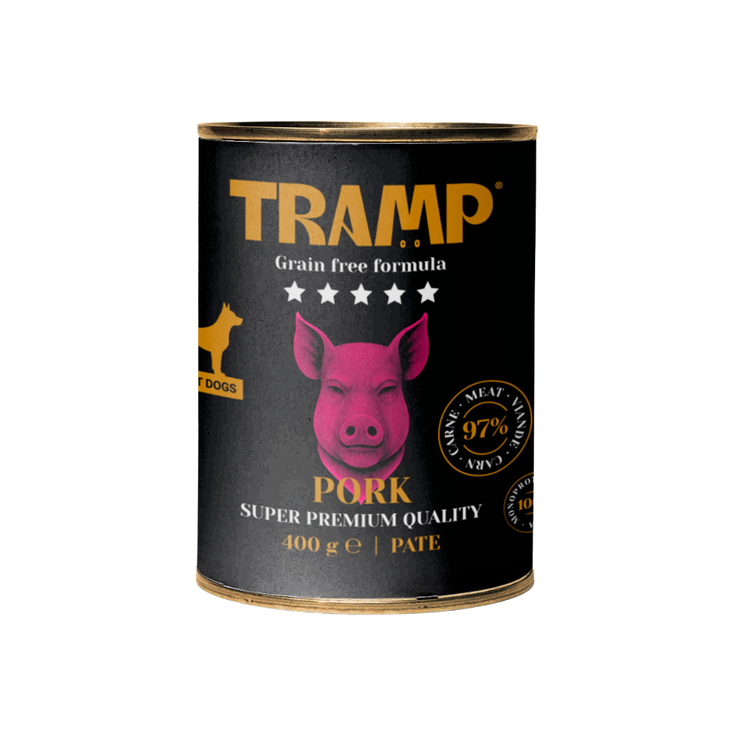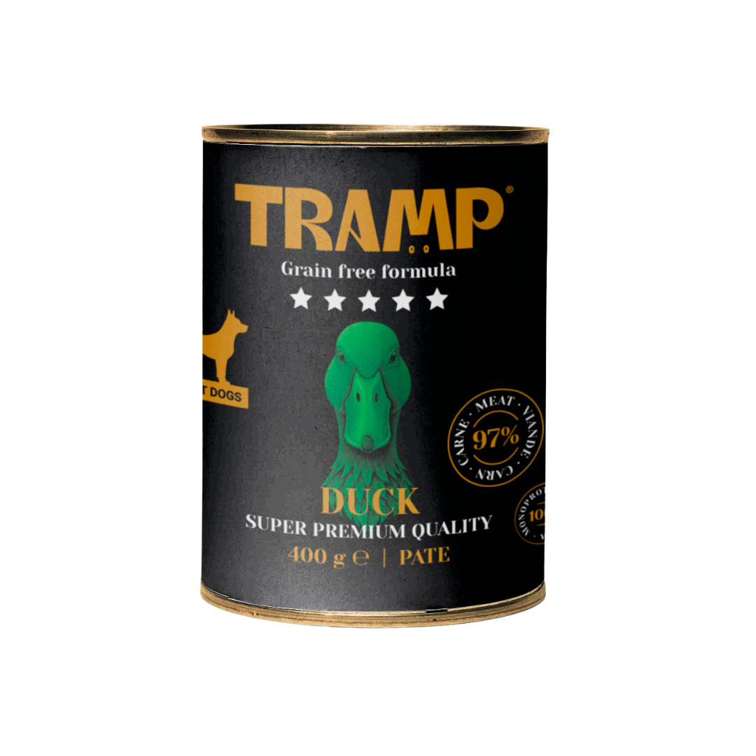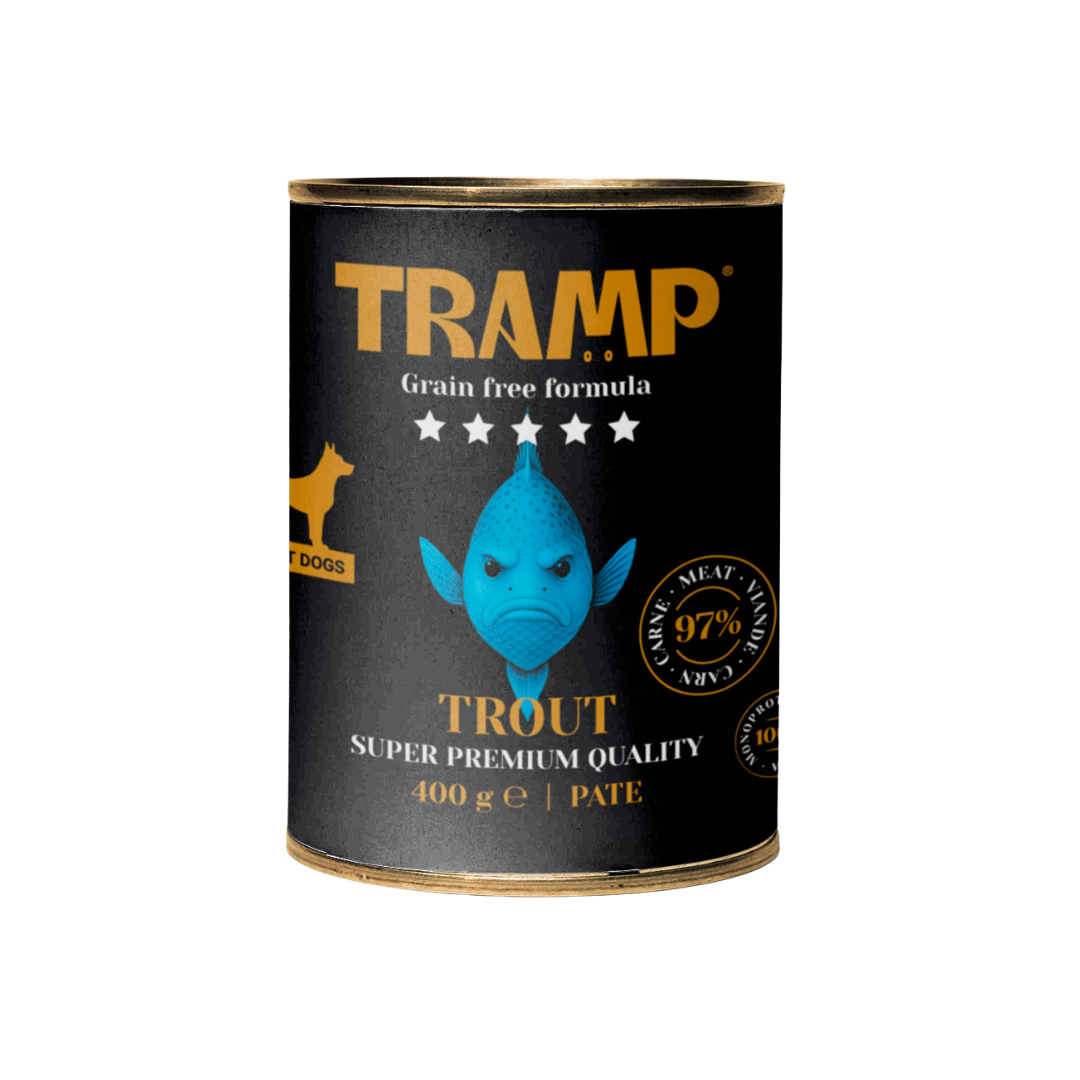 La gama TRAMP 5★ DOG GRAIN FREE ofrece una línea de alimentación húmeda natural, monoproteica y sin cereales, pensada para perros exigentes o con digestiones sensibles. Cada receta contiene un 97% de carne o pescado, cocinada suavemente para preservar el sabor y los nutrientes esenciales.